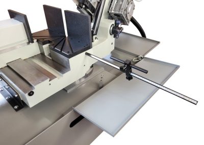 MAX 460G, segatrice a nastro semiautomatica per taglio a gradi, fulcrata, con regolazione della posizione dell’arco. Possibilità di morsa chiusura pezzo manuale o oleodinamica. Funzioni manuali e semiautomatiche a display touch screen.