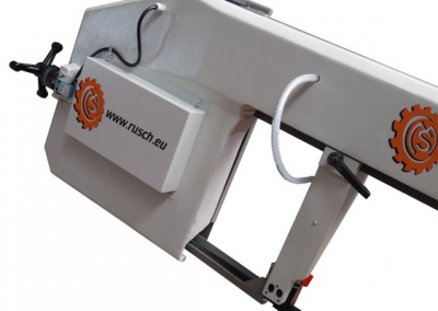 MAX 460G, segatrice a nastro semiautomatica per taglio a gradi, fulcrata, con regolazione della posizione dell’arco. Possibilità di morsa chiusura pezzo manuale o oleodinamica. Funzioni manuali e semiautomatiche a display touch screen.
